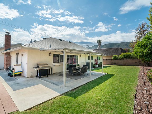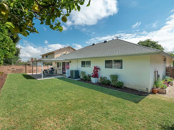 Remodeled family home with a spacious backyard for entertaining guests, space for the kids to play or dogs to run! Sellers take pride in their home and have replaced the roof, multi-stage HVAC, insulation and ducting, added a Nest thermostat and RING doorbell too! As you can see from the curb appeal, they have beautiful, upgraded landscaping. The interior of the home is light and bright with double pane windows, gorgeous dark laminate flooring, an updated fireplace and newer gas line, remodeled bathrooms with modern finishes, and ceiling fans in each bedroom. The kitchen is very spacious with a large in-kitchen eating area and a sliding glass door leading out to the covered patio for entertaining and BBQ'ing. The master bedroom has 2 closets, a Carrara marble vanity and private shower and toilet area. The other 3 bedrooms have spacious sliding mirrored closet doors. Indoor laundry area. The backyard has both patio and grass with an orange and lemon tree as well as a large side yard- a MUST see! This home is move-in ready!