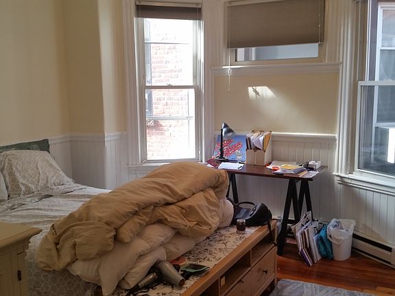 Lovely Sun-Filled, Top Floor, Brookline 3 bed just moments away from the heart of Brookline Village! Recently painted w/beautiful hardwood floorsand exposed brick throughout. Spacious layout allows for privacy. Big windows with grand fireplace grace the living room. Large closets w/ceiling fan in each bedroom. Huge/Bright eat-in kitchen w/stainless steel appliances, and ample cabinet space perfect for entertaining. In unit washer/dryer with separate private storage unit in basement complete this apartment. Overnight parking lot across the street from the building. Video Tour Available!