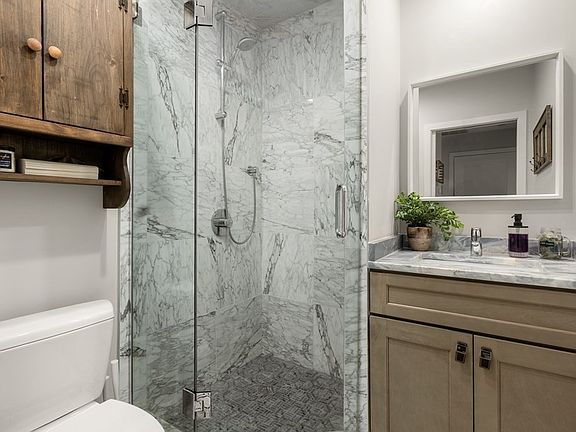 This 2018 gut renovated condo offers an open floor plan, large bedrooms and tasteful finishes. The kitchen features a large island with waterfall countertops plus seating for four, ample cabinet space and KitchenAid stainless steel appliances. The primary en-suite and guest bath include marble tile throughout and standup showers. Other features such as hickory wood flooring, recessed lighting and built-in surround sound complete the living space. A large rear deck off the living room offers direct exterior access to parking. This unit features gas heat and cooking, plus central air conditioning. Steps to local restaurants like dbar, Blend, Pho Hoa, and Shanti. Less than 1/2 mile to Fields Corner Red Line Station and easy access to RT93.