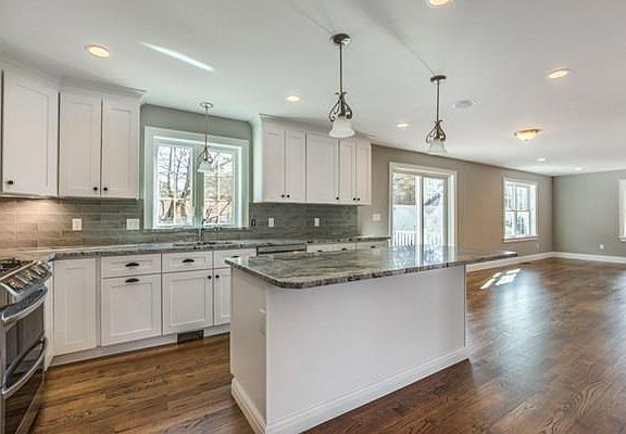 This finely detailed center entrance colonial with farmers porch opens to a flowing floor plan! At the heart of this home is a chef's kitchen anchored by a granite topped island, custom cabinets and stainless steel appliances! Stunning gas fireplace w/granite along with recessed lighting making the living room warm and inviting! Hardwood floors throughout the entire home including the finished third level. Speakers located in the kitchen, front porch and deck make this home great for entertaining. Spacious master bedroom suite with large walk in closet, recessed lighting w/fan along with a luxurious tiled shower bath. There are two additional bedrooms, office/study and a full bath that complete the second floor. The construction of this home reflects the efforts of true craftsmen working with materials and building a home of very high quality! Minutes to commuter train and Route 93!