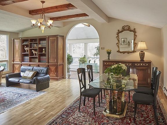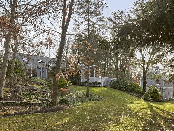 Ideally sited on over 1.4 acres of rolling, bucolic lawn and professionally landscaped grounds, this sun-splashed contemporary has been meticulously maintained and professionally updated providing both comfortable living and modern amenities all in one. The expansive kitchen/family room and living room with vaulted ceilings incorporate an abundance of space for entertaining and lounging adjacent to the spacious sun room and large deck overlooking the beautiful outdoor landscape. The first level Master Suite is a private oasis with gorgeous views of the vast grounds. The second level highlights three spacious bedrooms and another full bath. The detached carriage house built in 2012 includes both a large, finished second level studio ideal for additional family or guests and plenty of space for relaxing and entertaining along with the first level two car garage.
