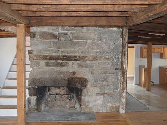 Cape in the Country. Center Chimney needs completion work, but some much potential! massive stone chimney with three hearths, original timber framing all set well back from the road on nearly 3 acres of land.