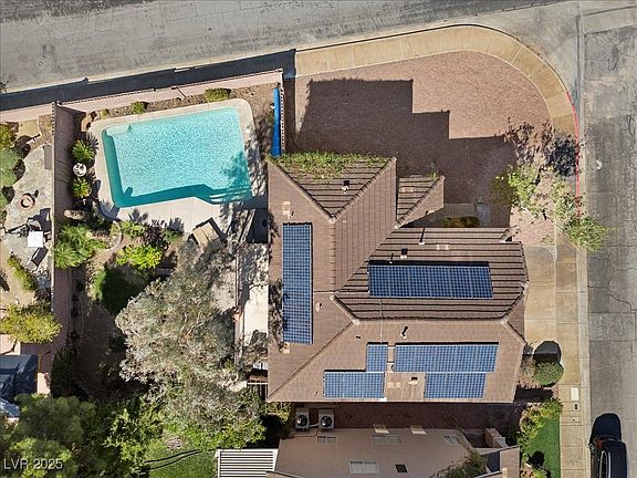 Beautiful Corner Lot Pool home with lush landscaping, NO HOA an Outdoor Kitchen w/fridge, BBQ, Sink & Bar under a vine covered Gazebo Area. When entertaining in your Volley ball POOL, bask under the covered patio with pavers, sit in the high-end spa, or head to balcony to enjoy the sunset. Just inside you'll find a richly remodeled KITCHEN and BAR featured on HGTV. You'll have plenty of space with several additional areas, including a separate dining area and a kitchen nook. An upstairs loft gives you tons of extra space with dark hardwood flooring and balcony views. A roomy 3-Car Garage features plenty of built in storage areas. The Primary Bedroom is separated from 2 other bedrooms and the large guest bath has two sinks. This loved home is the favored model in the neighborhood and comes with SOLAR energy saving you on electricity. Henderson bike trails & hiking are steps away as well as Acacia Park with Basketball, Baseball, Pet park & more. Convenient to freeways and shopping!