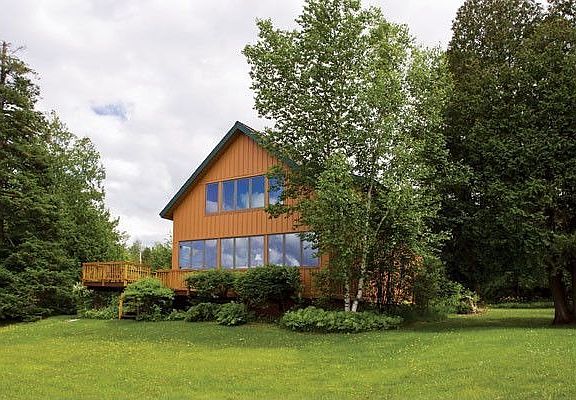 Lake Simon - Tupper Lake Region - Adirondacks, New York 3 Bedrooms / 3.5 Bathrooms / Year-Round Main House 2-Room Brick Guest Cottage with Fireplace / 2-Car Garage Directly Connected to 10-Mile Tupper Lake 125 Feet of gradual Waterfront / Gorgeous Landscaping