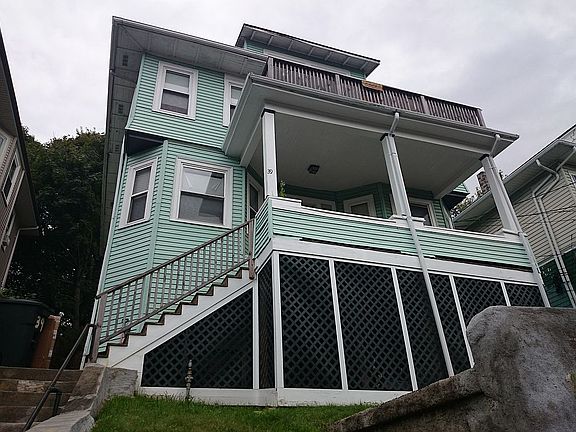 Two family home in the Oak Square neighborhood of Brighton. Each unit has three bedrooms and one bathroom. Garage with two parking spots. Washer and dryer in each unit. Big back yard. Eat-in-kitchens with dishwashers, hardwood floors, large bedrooms and living room, sun filled rooms. First floor unit has central heating and air, new appliances, and a bar in the kitchen with a wine/beverage refrigerator. Second floor has access to the attic for extra storage. The second floor balcony has excellent views! Boston and sunrises to the east, sunsets to the west.