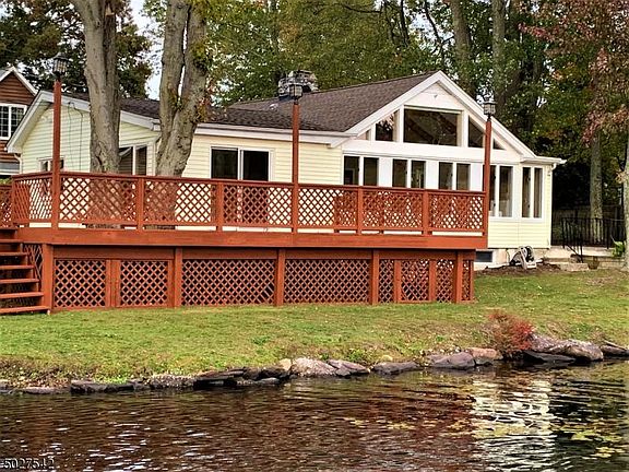 Fantastic opportunity to rent an amazing LAKEFRONT on beautiful Upper Greenwood Lake! End of a peninsula location with nearly 180 degree sunset views. This property and home are a dream. Vaulted beamed ceilings in the large living room, with gleaming red oak hardwood flooring, & gas fieldstone fireplace. The living room opens to a beautiful family room with giant windows that look down the lake, & sliders to a massive deck. The spacious eat-in kitchen is filled with tasteful oak cabinetry, breakfast bar, & wood flooring. There are three cozy bedrooms, all with wood floors, & lake views as well. The property is spectacular, with specimen plantings, white hydrangeas, expansive lawn, large detached storage shed, & private boat dock. Upper Greenwood Lake tenant membership available for lake usage.