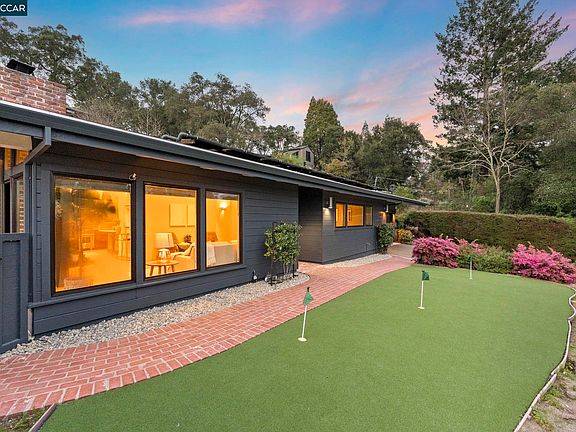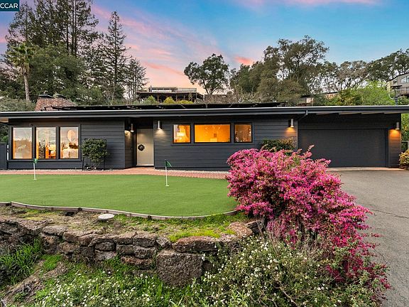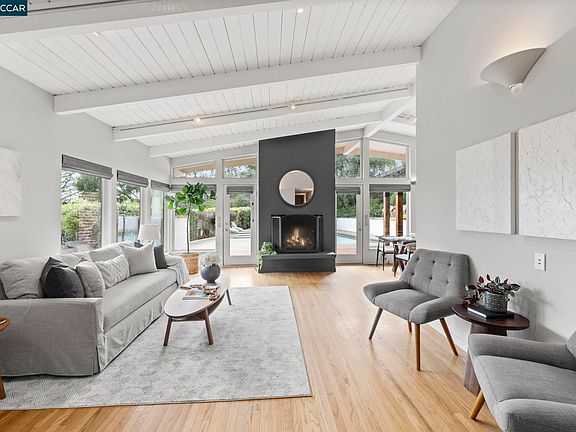 Experience peace and tranquility in your own mid-century modern retreat at 39 Las Vegas! Tucked behind a private gate, this single-level home is designed for effortless living and entertaining, featuring an updated kitchen, large laundry room, and three spacious bedrooms, including an expansive primary suite. The light-filled living room boasts vaulted ceilings, clerestory windows, and a dramatic fireplace with a floating hearth. The chef’s kitchen is a dream with two sinks, a 48-inch Wolf range, quartz counters, a breakfast bar, two dishwashing drawers, and a built-in fridge. Surrounded by nature, this unique .48-acre lot offers lush landscaping, mature fruit trees, and an inviting patio and pool area with a built-in barbecue, perfect for summer gatherings. The terraced yard leads to breathtaking views of the Orinda hillsides. The ideal location provides the perfect blend of privacy and convenience with easy access to Hwy 24, Orinda BART, and the vibrant downtowns of Orinda and Lafayette. Just 18 miles from San Francisco, this exceptional home is also zoned for the award-winning Orinda Elementary and Acalanes High School districts.