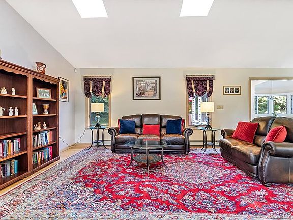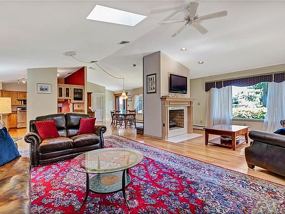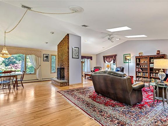 Designed With Entertaining In Mind! The soaring cathedral ceilings, floor to ceiling double sided fireplace, and beautiful hardwood floors accent the open spacious main level that lives like a Great Room and include a sunny living room with skylights, a casual dining room, and a generously sized Eat-in Kitchen with granite counter tops, breakfast bar, built-in dining area, and sliders to the picturesque yard and in-ground pool. 4/5 bedrooms include an amazing two story Master with a spa like bath with whirlpool tub, custom tile shower, double sinks, and walk-in closet, and an open dramatic staircase to the private loft ideal as a den/artist studio/exercise room with wet bar and half bath. The expansive lower level has a full bath, Family Room/ and office/5th bedroom and offers the opportunity for a possible in-law/guest suite. This special home is sited on a level private 1.02 acre lot with plenty of room for backyard games, outdoor living areas, and sparkling in-ground pool. The ideal staycation home and a steal at $548,500.