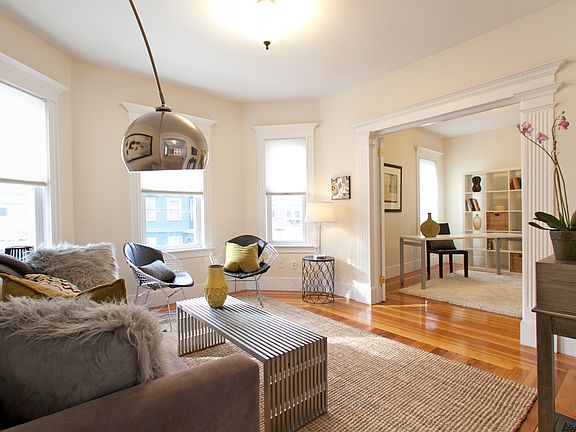 Ideally located on bike path near Davis Sq., this Philly-style condo is also steps to Lex. Park and near Porter and Ball Sqs. First level: LR, DR, office, full bath, and EIK w/glass doors to private deck overlooking shared yard w/gate onto bike path. Top fl: 3 big BRs, skylights, full bath. Laundry off kitchen by stairs to private bsmnt storage. Wood floors, central air, dentil moldings, high ceilings, new roof in 2009. Parking space + private garage bay used for storage. Certified deleaded.