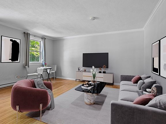Move right into this ground level, fully updated condo in a well-maintained complex with recent roofs, patios, decks, to sustain the integrity of the buildings. You’ll fall in love with the hardwood floors in the combo living room dining area and crown mouldings,. The contemporary soft gray kitchen cabinets, convection oven range ,vented exhaust hood, sleek fridge, and quartz countertop complete the design buyers demand! Double closets in the bedroom, plus a slider leads to the patio for those warm days and nights. Don't miss the deep living room entry closet with shelves on the way out! PETS ARE ALLOWED! Parking space , plus visitor parking. Laundry facility in the basement. Low electric bills due to Littleton Light and Electric. Easy access to highways , several supermarkets, shopping , restaurants.Perfect for singles, seniors, snow birders looking for a seasonal home. This is the one!