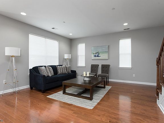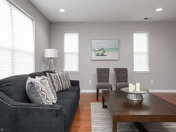 Convenience and style are yours! Spacious end unit with open concept, high ceilings, beautiful wood floors. Pristine, move-in condition with updates and fresh paint. Ready to enjoy!Kitchen with 42" cabinets, featuring a breakfast bar opening to living/dining area. Wood floors and full bathroom on main level. Master bedroom has walk-in closet, luxury bathroom with jetted tub and stall shower. Laundry near bedrooms on second floor. Additional bedroom and bathroom on second floor. Great location adjacent to beautiful canal, offering convenient access to recreation, shopping & train station. Attached garage and ample storage.