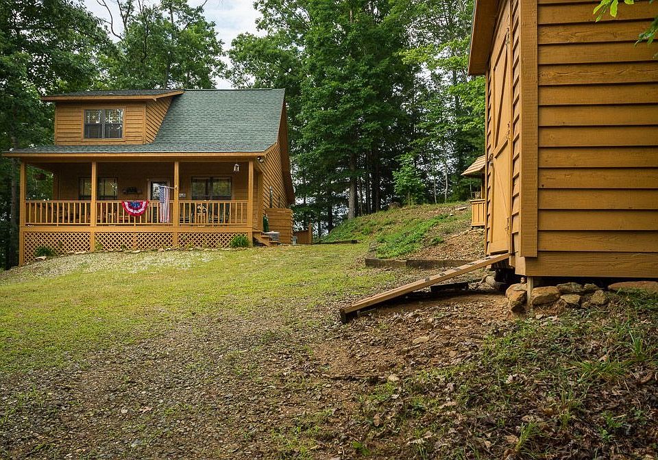 Beautiful, Furnished, Immaculate Cabin for Year Round Living or the Perfect Vacation Home. 2 Bedrooms, 2 Baths, Plus Sunroom and Loft Room. Private one Acre with No Restrictions. Stone Gas Log Fireplace, Hardwood Floors, & Cathedral Ceiling. Covered Rocking Chair Front Porch. Large Back Deck and Cozy Firepit out back. Out Building with Electric for Workshop or Storage. Large Parking Area with Circle Driveway. This Cabin is what you have been searching for. Enjoy sitting on your deck waiting for the Friendly Deer Family with little Bambi's to drop by and visit for awhile. Excellent Condition, Great Location Close to both Blairsville and Blue Ridge, with easy access and Paved Road to Hwy 515.