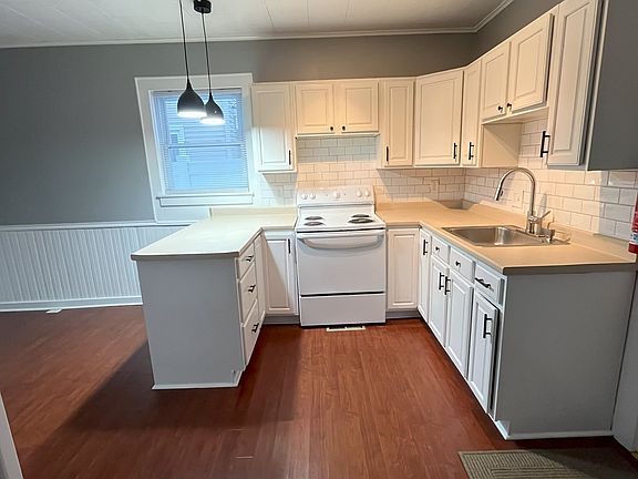 2 bedroom 1 bath duplex. walking distance to downtown. Laminate floors, immaculate condition. Enclosed rear porch. kitchen with range/refrigerator. washer/dryer. 2 off-street parking spaces. Rent includes water, rubbish, lawn, and snow. no smoking/pets. Available immediately.