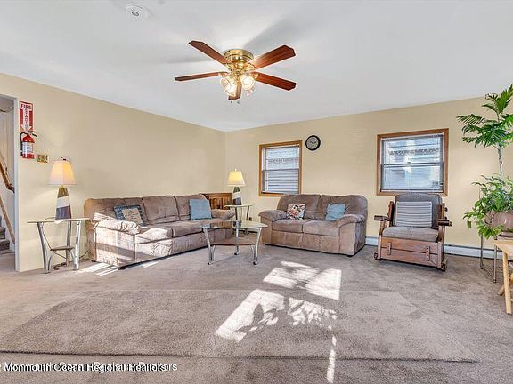 There's room for the whole family in this large 5 bed 2 bath bungalow/colonial! Enter into this spacious main living room with tons of natural light, that flows right into the dining space with an open-concept feel. Vaulted ceilings compliment the large kitchen with skylight and breakfast bar. A bedroom, office and a full bath complete the first floor. Upstairs you'll find 3 good sized bedrooms including the master with huge walk in closet. Backyard provides plenty of space for kids, pets, and storage, including a 1 car garage that opens up to the rear street. No neighbors behind you! Newer siding and all roofs are less than 2 years old. Perfect location just minutes from Ideal Beach, and short drives/bike rides to Sandy Hook, downtown Red Bank and Sea Bright beach!