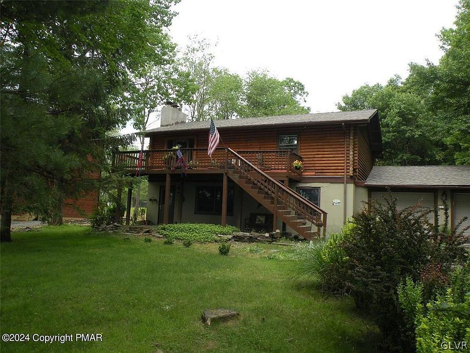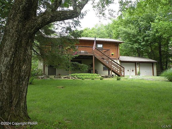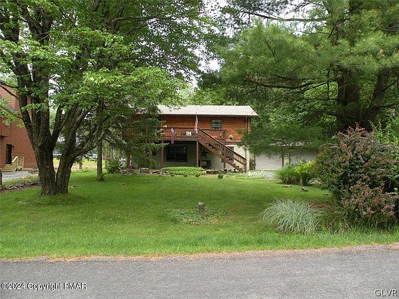 LOCATION....LOCATION....LOCATION! This is a must see Raised Log Home located across the street from Lake access. Previously offered at $510.000 now only $449,900. Home features 2 Car Garage, Hardwood Floors, Family Room and Living Room Fireplaces, Front and Rear Decks Just 1/2 block to Club House, Swimming Pool, Playground and Beach. Other community amenities include Volley Ball Court, Basketball, Pickle Ball and Tennis Courts. Golf Cart and ATV Friendly. close to all of the Pocono Attractions, White Water Rafting, 2 Ski Resorts, Indoor Water Park, Golf and More. Easy commute from NY, NJ and the Philadelphia Area. Retirement Home, Vacation Home or Rental Investment this Home is in MOVE IN Condition. Don't miss this opportunity to own your Pocono Home. WELCOME HOME.