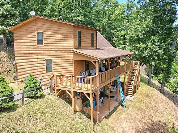 GORGEOUS chalet in North Oak Estates! Full paved driveway makes for easy access. Outside youll enjoy the wide fire pit or any of the many covered porches or deck. Inside, the Great Room boasts hardwood flooring with a stone fireplace that stretches to the vaulted wood ceiling. The open floor plan provides great entertaining with kitchen/dining/living area on main floor along with guest bed, bath and laundry area. Soft carpet leads you upstairs to your master suite with private bath and walk-in closet. The fully finished lower level is set for fun! Rec room complete with gas stove, spacious bedroom and full bathroom with its own outdoor patio. Come home to the mountains!