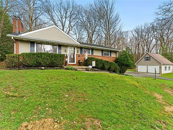 Location LOCATION! Sitting on a 1.49 picturesque acre and nestled in along the Memorial Park, is this adorable 3BD, 2BA brick home. Tons of beautiful cabinets and countertops in the 22x9 eat-in kitchen. Plenty of closets and storage, inside and out! Hardwood floors throughout the spacious rooms. With a most unique design, the walk-out basement offers extra potential with a 23x11 finished room, full bath and more! 28x24 garage offers a 28x14 loft for added storage or a man-cave! New roof 2022 and was just hooked up to the public sewer this spring. Within minutes of the Grove City Premium Outlets and Interstates 79 and 80!