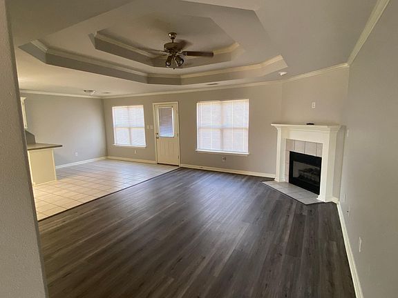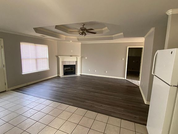 Wonderful corner lot with a fully fenced back yard, two car garage and an extra parking pad in the family friendly Blooming Ridge subdivision, close to shopping, restaurants and schools. Inside this nice brick home there is new flooring and fresh paint throughout the entire house. The living area offers a double tray ceiling and an open floor plan. There are three nice sized bedrooms featuring a split floor plan and two full baths. The master bath has a large tub and a separate walk in shower. The master bedroom has a tray ceiling and a large walk in closet. The kitchen is complete with a dishwasher, electric oven, built in microwave, pantry, refrigerator and a nice size dining area. There is a separate laundry room for you to bring your own washer and drier. Renter is responsible for all utilities and yard maintenance. No smoking. Non refundable pet deposit for approved pets.