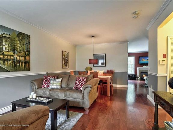 The most exclusive town home available in Brick! Come to see this stunning townhouse, which boasts wide plank hardwood floors, stainless steel appliances, granite countertops, and a private cul-de-sac location which backs to woods. An extended patio make this private and secluded back yard ideal for entertaining and relaxing. The master suite features custom built-ins in the walk-in closet, double vanity, custom tiled shower and Jacuzzi tub. The living room has large windows with views of a private wooded area and a working natural gas fireplace. This home also features recessed lighting, crown molding and brand new carpeting.