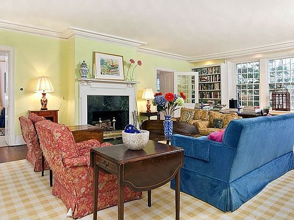 At the end of a lane across from the rolling green campus of The Lawrenceville School, the Manning family raised three daughters and entertained Pulitzer Prize winner, Thornton Wilder, throughout the roaring '20's. This classic stone colonial remains today largely unchanged: a family friendly home with gracious rooms for gatherings large and small. An attractive 4-bay garage with wonderfully bright studio above and a separate two-bedroom cottage add functionality and income opportunity to the 5.4 acre property. Marble fireplaces grace the dining room and living room. A sunny library and separate study are more intimately scaled. The kitchen's pro-grade appliances meet today's high standards. A well-designed addition includes a handy mudroom and open family room warmed by a wood stove. Two staircases lead to five bedrooms, each distinctly charming. There is partial AC. With a sitting room, pretty marble bath, walk-in closet and corner fireplace,the master amenities are on par with any new house.