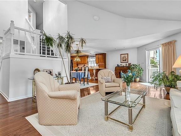 Lovely Contemporary, low maintenance brick and vinyl home in pristine condition and exceptionally well built. Unique design ensures that almost entire home is bathed in natural sunlight enhanced by cathedral ceilings, creating an extremely light and airy environment - Even the 26 ft. LL Fam. Rm. is light due to a ground level walk-out to private rear patio and also features 8 ft. ceilings, heatalator gas or woodburning frpl, handmade oak and porcelain wet bar - Fully equipped Kit provides convenient work space and breakfast bar - Sliding doors lead to Trex deck off Dining/ Living area - En suite offers a quite respite with personal bath, spacious dressing area and organized double closet - Newer American Standard HVAC has been updated in 2020 - All Andersen windows and doors - Polished oak flooring - Time saving whole house vac - 200 amp service - Oversized 2 car garage is completely finished with built-in shelving and even a mounted car vac included.