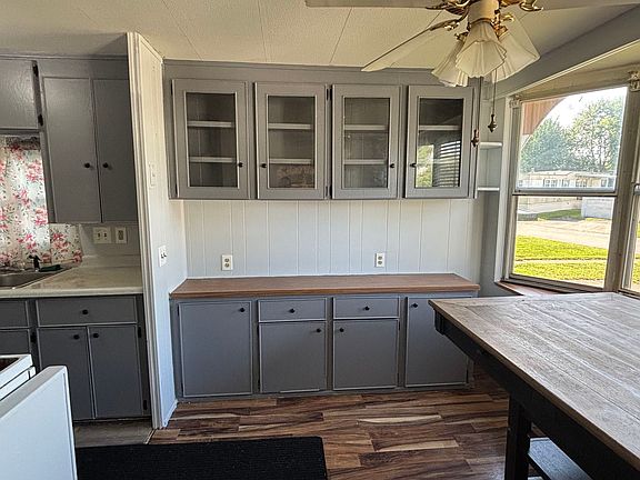 Welcome to Manor Crest Manor, a desirable 55+ manufactured home community in Manteno. This charming 2-bedroom, 1-bath home features a functional galley kitchen with white appliances. The bathroom, which connects to the master bedroom, also houses the convenient in-unit washer and dryer. The master bedroom offers cozy carpeting, while the dining room and second bedroom feature easy-to-maintain laminate flooring. Outside, you'll find a storage shed in the backyard, perfect for your tools or seasonal items. This home is being sold as-is and all new owners must be park-approved prior to purchase.