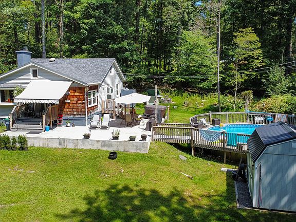 Charming 2-bedroom, 1-bath home just a short stroll from the stunning Lake Wallenpaupack. Perfect for both year-round living or a peaceful weekend retreat, this cozy home features an inviting open floor plan that flows seamlessly to a spacious living area. Step outside to your private pool surrounded by a large patio and deck creating ample space for entertaining. The expansive front yard offers plenty of room for outdoor activities or simply relaxing and enjoying the fresh air. Whether you're taking a dip in the pool, hosting a barbecue, or heading out for a day on the lake, this property offers the perfect balance of comfort and convenience. With its prime location near Lake Wallenpaupack, you'll have easy access to boating, fishing, and hiking, while still enjoying the tranquility of your own space. Don't miss out on this opportunity to own a piece of paradise!
