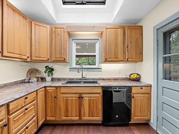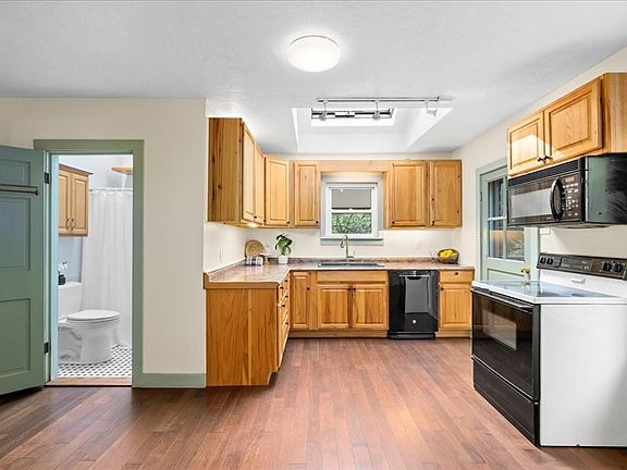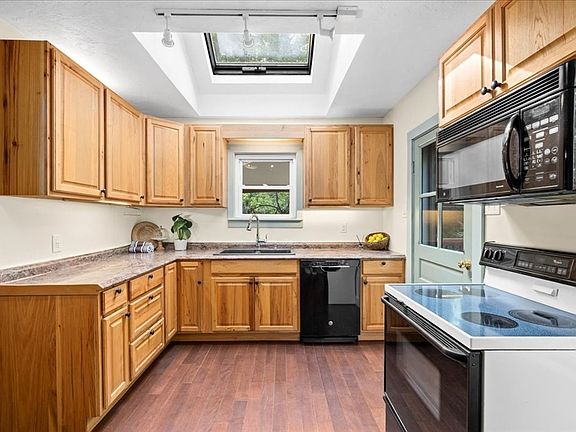Lovely three bedroom, 2 bath home on a wooded country road. Large living room with a cozy wood stove and hardwood floors. Bright kitchen with a large skylight opens to lovely dining area. Large primary suite on the first floor with a private deck and bathroom with a walk-in shower. Second bedroom on first floor. Upstairs is a large third bedroom with brand new carpeting. Workshop area in basement. One car attached garage. Large driveway.