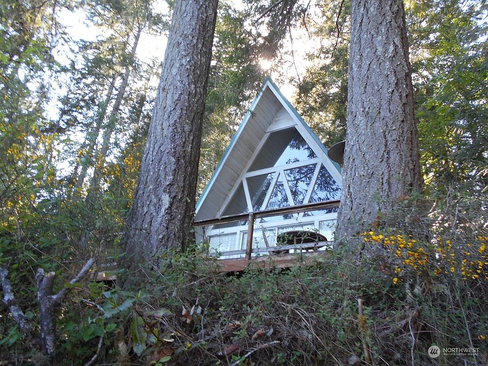 Hood Canal Waterfront Cabin in quiet neighborhood. A Frame cabin with metal roof and poured concrete foundation. Community water system and no HOA's. Private stairs go to beach where you can pick oysters. Big bedroom in loft and second bedroom in main area. Cozy living room with wood stove and sliding glass door to deck. Great vacation home or live year round.