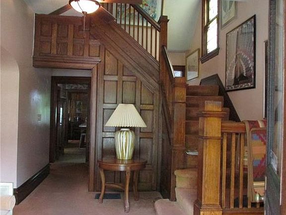 ORIGINALLY BUILT AND OCCUPIED BY THE McMunn FAMILY, CHARMING, WELL MAINTAINED, ORIGINAL WOODWORK, DOORS AND HARDWOOD FLOORS THROUGHOUT. 3 FIREPLACES, 2 DECORATIVE AND 1 GAS IN LR, BUILT IN BOOKCASES, OFFICE AREA OFF KITCHEN ( FORMERLY PART OF KITCHEN WHERE REFRIGERATOR WAS LOCATED, COULD BE A PANTRY). GENEROUS ROOMS SIZES, 2 BEAUTIFUL STAINED GLASS WINDOWS IN EXCELLENT CONDITION, ELEGANT FRONT STAIRCASE WITH ORIGINAL BANNISTER, 2ND STAIRCASE TAKES YOU TO THE KITCHEN, NICE SIZE BEDROOMS, CLOSET SPACE AND LARGE, BRIGHT WINDOWS. LOVELY, PRIVATE PORCH OFF THE KITCHEN OVERLOOKS THE LOVELY BACKYARD. CONVENIENCE TO LOCAL SHOPPING, SCHOOL, HIGHWAYS AND THE CITY, NEW ROOF, FURNACE 3-4 YRS, NEWER DISPOSAL, PLUMBING, GAS LINE. KICK YOUR SHOES OFF AND RELAX ON THE LOVELY FRONT PORCH