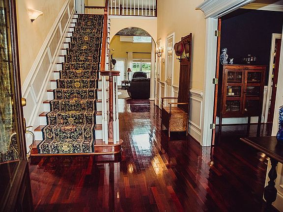- Double Vanity, Vaulted Ceiling(s), High Ceilings, Separate Shower, Garden Tub, Bookcases, Foyer - 2 Story, Entrance Foyer, Hardwood Floors, Carpet