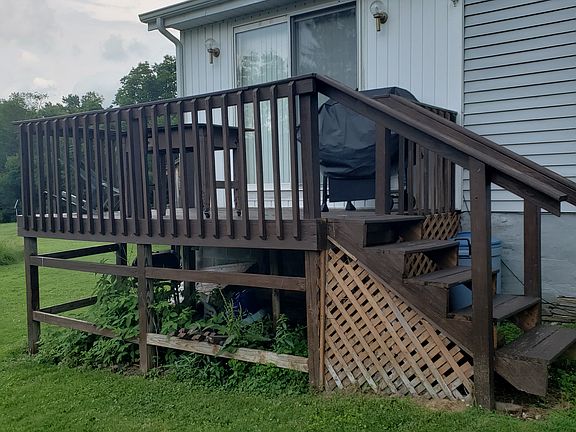 Welcome Home! This 2 Bedroom 1 Bath Home is Perfect for a Starter Home! The first floor features an Open Floor Plan from the Living Room through the Dining area into the Kitchen. The Second floor consists of your 2 Bedrooms and Full bath with a separate vanity area. The back deck is accessible from the Kitchen through Sliding Glass doors. The property has 2 vehicle gravel parking spaces for Off Street Parking, a Shed, and a nice Flat Yard. Call to make your appointment!