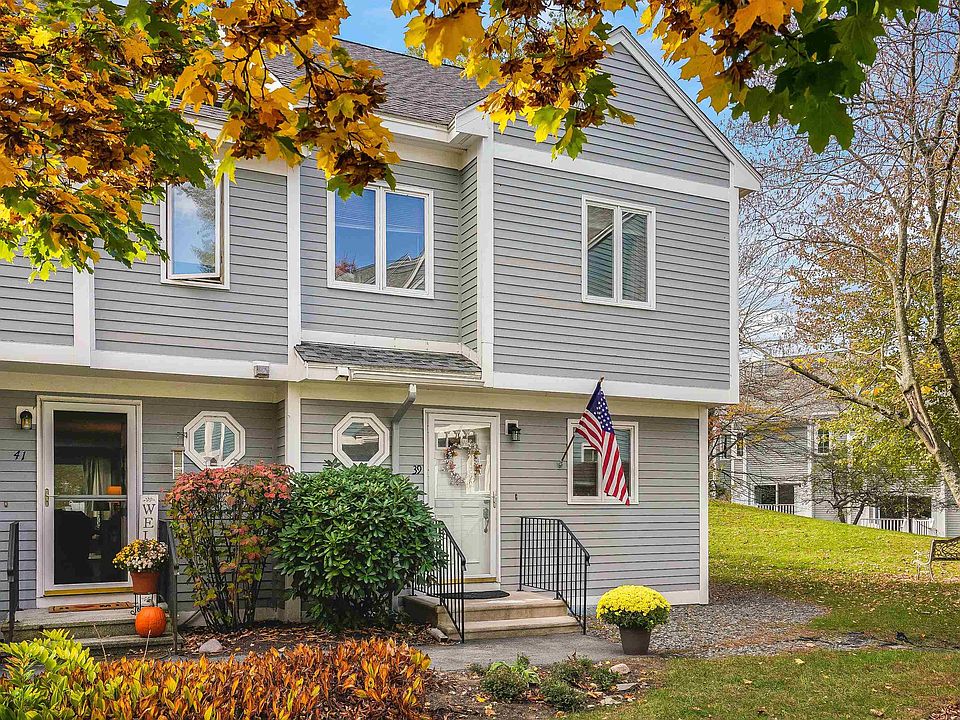 Step inside this beautifully updated and maintained end unit at popular Harris Pond--so convenient to Rt 3 and shopping--and you will immediately recognize that WELCOME HOME feeling! Spotlessly clean and filled with natural light, this 2 bedroom unit has a lovely white shaker-style kitchen and extra large windows overlooking the lovely park-like limited common area that runs along the side of the building. Polished hardwood floors brighten the first floor open-concept living room/dining room area complete with wood burning fireplace and sliders to the private back deck with serene wooded views! Upstairs, a palatial primary bedroom suite features 2 closets, vaulted ceilings, an updated bathroom with 2nd sink, new floors and newly resurfaced tub. Down the hall, a nicely-sized 2nd bedroom includes window views out front and side, while a tidy laundry room also provides lots of storage and a view of the front courtyard! On the 3rd floor there is a room-sized loft area that overlooks the primary bedroom...a great space for an office, nursery or workout room! If you need more space, the dry-as-a-bone full basement is ready for finishing. This special spot is tucked away privately at the end of the buiding where you can enjoy sunny afternoons on the back deck or play catch on the large grassy, tree-shaded area just outside your door. Included as part of the community, enjoy an in-ground pool, leafy grounds, clubhouse and more. Open House Sun 11/5 from 1-3pm. Don't wait!