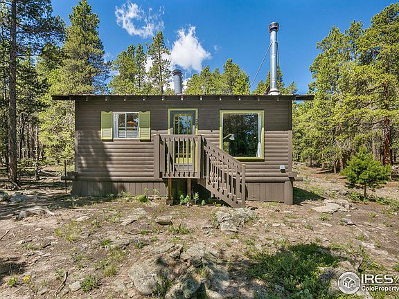Adorable cabin nestled in the woods of Gilpin County close to Golden Gate State Park, Nederland & Eldora Ski Resort! Perfect for a 2nd home or for year-round/full-time living. Privately set back from a county maintained road offering incredible privacy in a beautiful forest setting. Mountain ambience flows throughout this open floor plan with vaulted ceilings, wood beams, kitchen w/ bar seating & large windows that capture sun & views. All new LVP flooring & radiant heaters throughout. Launch all your outdoor adventures from here using neighborhood trails or from the many nearby trailheads to explore. Flat & usable 1.95 sunny acres + the option to purchase the adjacent 1.92 acres listed separately MLS# 969721, 741 Mountain Meadows for $109,000- R008196. Buy both and have your perfect mountain cabin on almost 4 private acres or develop the 2nd lot as an investment. High speed fiber Internet available! Furnishings negotiable.