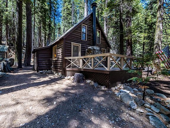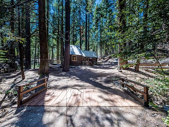 An exceptionally charming and private setting awaits you at this Forest Service Cabin. There are 2 cabins on this property for one great price. The original sleeping cabin has 2 bedrooms and a bathroom. A wood bridge takes you over to the main cabin. The main cabin has 1 bedroom upstairs and a big loft area. The front porch leads you into the dining room and kitchen which has plenty of natural sunlight. Large living room for family gatherings with an open stone fireplace. Off the living room is a huge deck that overlooks the stream and an old stone bridge. During non drought years 2 streams run along these cabins. Must see to truly appreciate this rare opportunity.