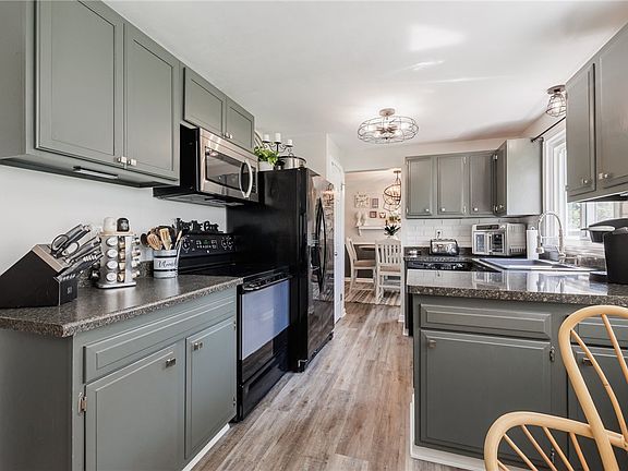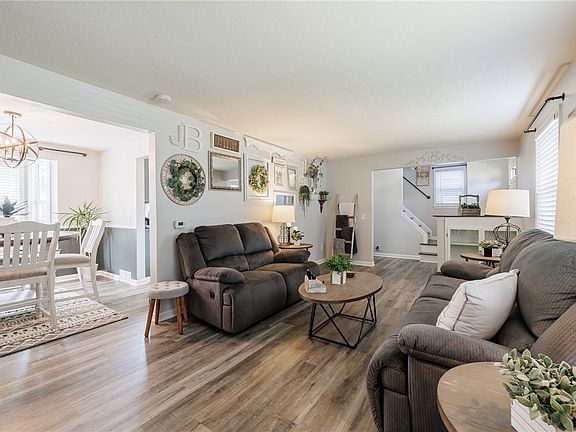 SHOWSTOPPER! Step inside to discover a meticulously maintained 3 bedrooms, 1.5 baths, move-in ready home. Tons of updates to include kitchen, full bath, and partially finished basement. Gorgeous primary bedroom with floor to ceiling windows, full wall closet and vaulted ceilings. Spacious 2nd bedroom with vaulted ceilings. The 3rd bedroom is a fashionista dream, set up like a little boutique with a floor to ceiling window and step up closet. Beautifully updated eat in kitchen with all appliances included. Formal dining room with bay window overlooking the tranquil, matured landscaping. Luxury waterproof, vinyl plank flooring installed in 2020 runs throughout the home on all 3 levels. New updated light fixtures throughout. Ceramic tile in mudroom and Full bath. Partially finished basement with walk out egress window adding extra space for a family room or additional bedroom. Oversized 2.5 car garage with a handy work area and screens to enjoy the summer bug-free. Fully fenced yard with newer shed, playground and trampoline. Windows, A/C unit and roof on the house replaced in 2020, garage roof 10-15 years old. Delayed negotiations until Aug 22nd. All offers due by 10:00am.