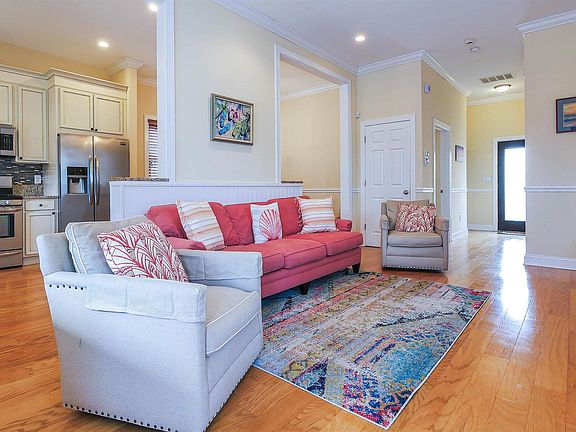 OPEN HOUSE, SAT 10/26 - 11:00 to 1:00 & SUN 10/27 10 TO 12 You will be wowed by this beauty from its fabulous street presence to its stunning interiors. This gorgeous four-bedroom, three-and-a-half bathroom home built in 2013 features high ceilings, tons of natural light throughout and is a move-in ready dream home with ample outdoor entertaining space. Enjoy your morning coffee on the beautiful front porch or enter and reveal in the first floor’s open layout. The airy living room with its beautiful hard wood floors flows into a well appointed kitchen and dining room with exquisite finishes, stainless steel appliances, and a breakfast bar. An in-law suite with an attached full bathroom and a windowed powder room complete the first floor. Up the open staircase are three additional bedrooms, all boasting high ceilings and filled with abundant light. Through elegant double doors you will find the primary bedroom a which is a true sanctuary and features vaulted ceilings, a great size walk in closet and sliding glass door that lead onto a spacious balcony. The luxurious en-suite bathroom has a bounty of counter top space and an expansive walk-in shower. An additional full bathroom with a windowed shower with vessel sink is just off the hallway. A lush fenced backyard with an outdoor shower is an ideal respite to enjoy and entertain on warm summer evenings at this perfect shore home. Other desirable features include double decks, an attached garage, additional off-street parking, and an alarm system (currently not in use) . This centrally located home is just two-and-a-half blocks from the beach, five blocks to the Ventnor Boardwalk, and a close stroll to restaurants, bagels, bank, subs, Casels and more.
