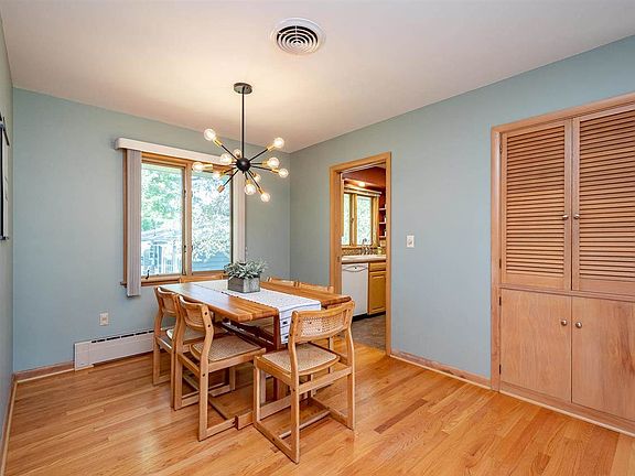 Check out this much sought after mid-century ranch design home in Iowa City. A new home can't replicate this 1957 McCreedy built home in the Bel Air Addition to Iowa City. All the quality and excellence has been meticulously maintained over the decades. A warm brick fireplace & hearth sits alongside the inviting front windows in the living room. Solid birch hardwood on all kitchen cabinets, built-ins and trim through the home. Thoughtful details such as built in cabinets, rooms scaled and designed with specific purpose instead of the wide-open living of today's designs. Boasting four bedrooms, two full baths, and a second kitchen in the basement. A sunny four-season breezeway between the house and garage serves as a gathering point or relaxation room. A pull down stairway in the garage leads to ample attic store-away space that is very usable for additional storage. A cache of beautiful garden perennials surround the home, cultivated with care over many years, resilient and ravishingly beautiful. Near public schools and Regina.