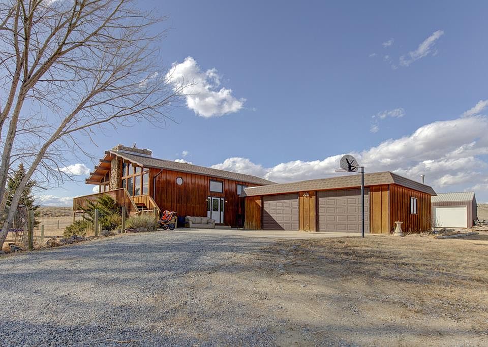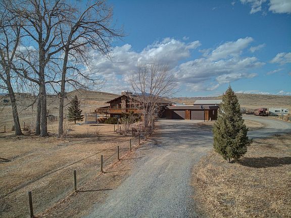 Great horse property, a 6 bedroom, 3 bath home with a massive 2 level moss rock fireplace and outdoor decks, a 4 stall horse barn w/tack room, adjacent to 640 acres of State land, 2 bay heated shop and RV garage w/10'H doors, a two-stall horse shelter, and the detached 2 car garage is heated and one bay has an oil pit, Nice quiet location.