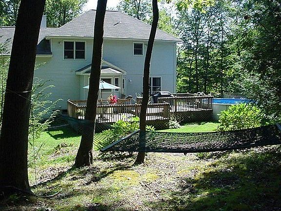 This lovely newer colonial is well situated on a quiet 2.25 acre parcel of land with its own pond, babbling brook, and the serenity of a private paradise. Inside you will find plenty of room for informal family living as well as formal entertaining. The home features formal living and dining rooms plus a family room with a wood burning fireplace. In addition to the upstairs bonus room, there is a lower level family room perfect for any number of family activities. Central air, hardwood flooring, steel I-beam construction, crown molding, and a set-up for a generator are just a few of the amenities you will find in this well maintained property. The extensive rear deck is great for weekend get-togethers, and you will love the above ground pool on those hot summer days. There is also a separate outbuilding that offers extra storage space for all the toys and equipment.