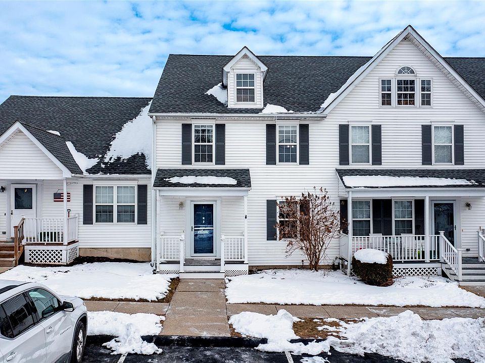 Welcome to your dream townhome in the heart of Pawling's sought-after Deerfield Ponds community! This rarely available 3-bedroom, 2.5-bathroom home offers 1,600 square feet of living space across its main floors, complemented by a basement that provides abundant storage. From the moment you step onto the charming front porch and through the inviting foyer, you’ll feel right at home. The large, bright country kitchen is a delight, featuring stainless steel appliances, room for an island or breakfast area, and a chalkboard wall that adds a touch of fun. An open pass-through to the dining area ensures seamless entertaining. Down the hall, past a powder room, hall closet and door to the basement, you’ll find an expansive living and dining room with brand-new porcelain tile flooring, a striking two-sided wood-burning fireplace, and access to a private back deck. The deck, complete with a privacy wall, overlooks the community’s lush shared green space. Upstairs, the primary suite serves as a tranquil retreat with a full bath and dual closets. Two additional bedrooms share a second full bathroom, while a convenient laundry closet with a washer and dryer completes the second floor. The basement offers multiple storage rooms and mechanical areas, perfect for keeping everything organized. With two designated parking spaces right outside and a new roof installed in 2017, this townhome is move-in ready. Deerfield Ponds offers an unparalleled lifestyle, with amenities that include a clubhouse, an inground pool, tennis courts, a fitness center, basketball courts, playgrounds, walking paths, and picturesque ponds. Outdoor enthusiasts will love the proximity to the Appalachian Trail and Pawling’s Lakeside Park. Commuters will appreciate easy access to Route 22, 684/84, and Pawling’s Metro-North station, while the charming Village of Pawling provides a delightful array of dining, shopping, and entertainment options. Don’t miss this incredible opportunity to make this your new home!