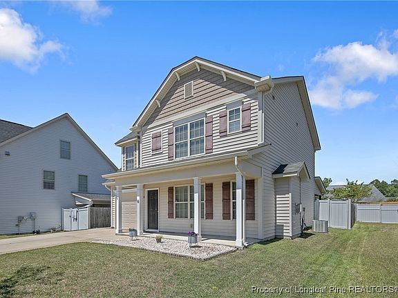This beautifully maintained home is tucked away on a quiet cul-de-sac in desirable Lexington Plantation. Offering 4 bedrooms (including a large bonus room used as the 4th bedroom) and 2.5 bathrooms, it features an open and inviting floorplan perfect for both everyday living and entertaining. The first floor includes a spacious living room, a bright eat-in kitchen with stainless steel appliances, granite countertops, and elegant cabinetry, plus a convenient half bath and laundry room. Upstairs, you'll find a generous primary suite, three additional bedrooms, and a full guest bath. Step outside to enjoy the covered rear patio, fully fenced backyard, and a charming fire pit area—ideal for cozy evenings. The home also offers a single-car garage with an extra parking pad.Located just a short commute to Fort Bragg and close to shopping and dining, this home truly has it all!