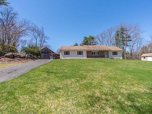Mini-Farm! Newer Ranch on 1.25 acres includes 38X40 HEATED BARN,oversized 24X28 2 car garage,18X24 2 car carport, chicken coop & 10X15 shed,tons of off-street parking! The home offers a wide open floor plan,kitchen/dining/living rooms are all wide open to each other with wood planked cathedral ceilings,kitchen offers lots of oak cabinets & counter space,slider to newer composite decks 14X15 & 12X14 plus a newer 12X12 patio 2 BR's,full bath & laundry room complete the 1st level! The fully finished walk out basement offers a 4 RM,2 BR in-law apartment with kitchen,dining area,living room,3/4 bath,2 BR's and 2 walk out doors to its own separate driveway! The BARN is versatile and can be used for animals,storage,car collection, etc! Park your business here,work and live at the same property,no need to rent a separate space for your inventory,equipment,vehicles, etc! Contractors,landscapers, and many more! Must see!