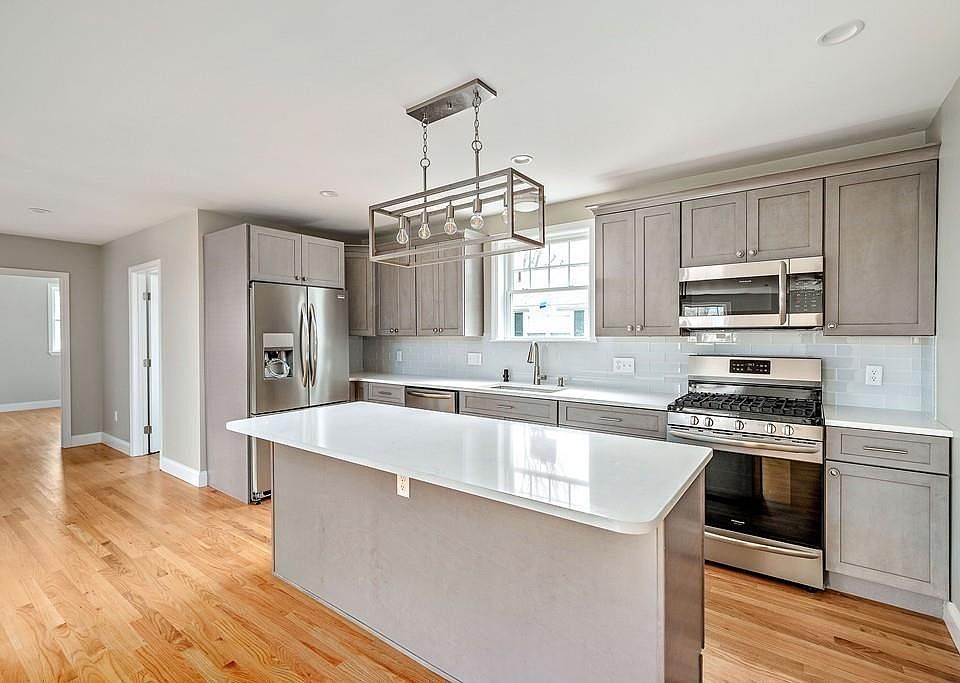 - Kit Dscrp: Flooring - Hardwood, Countertops - Stone/Granite/Solid, Cabinets - Upgraded, Kitchen Island, Stainless Steel Appliances, Open Floor Plan, Recessed Lighting, Countertops - Upgraded, Gas Stove, Lighting - Overhead, Lighting - Pendant