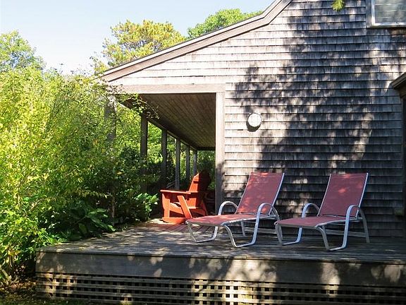 Custom built 3 bedroom 3.5 bath home sits on an acre of land in the heart of West Tisbury. Easy walk or bike ride to the village for shopping, banking, pharmacy, post office and much more all on walking/bike paths. First floor master with private bath, built in cabinet and book shelves, two nice sized closets and french door leads out to the private screened porch. Open living kitchen and dining. Upstairs is a second master with bath, guest room with adjacent bath. Large front porch with deck that wraps around to the screened porch. Whole house dehumidification system, central vacuum, ceiling fans in all the bedrooms. Excellent rental history!