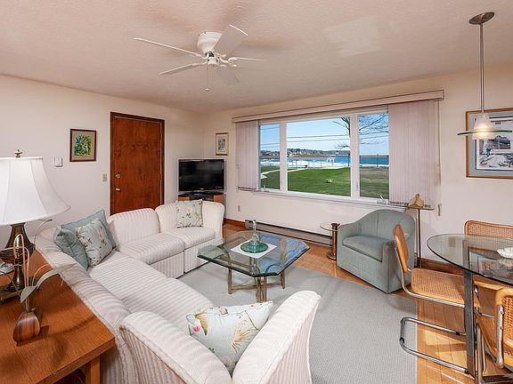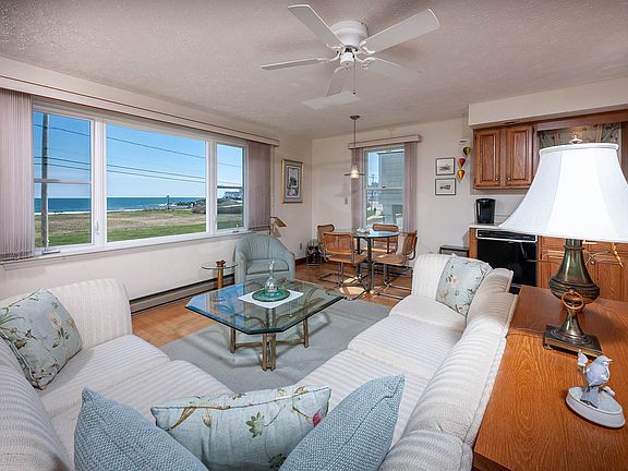 Listen to the surf and experience the amazing panoramic views of the Atlantic Ocean, Short Sands Beach and Ellis Park from this updated turnkey first-floor year-round open concept two bedroom, two bath condo. Just a short stroll to restaurants, local shops with plenty of family entertainment at York's Wild Kingdom, Fun-O-Rama and York Beach Concert Series in the gazebo across the street. This condo is being sold turnkey and has beautiful light hardwood floors throughout, updated bathrooms with granite and tile, stainless steel appliances that include range, refrigerator, microwave, toaster oven, black dishwasher and over sized pantry closet. Spacious master bedroom (can fit a king size bed) with en-suite bath, has a tiled step-in shower and large walk-in closet. Step out of the master bedroom onto a rear deck and enjoy the sunshine. Spacious 11' x 8' lockable storage closet is on the ground level with walk-out door to parking in rear. Walk-out first level basement has a full bath with shower and washer/dryer that are included in the low condo fees. Experience Ocean Edge and all the amenities it offers with a lifestyle of enjoyment for all!!!