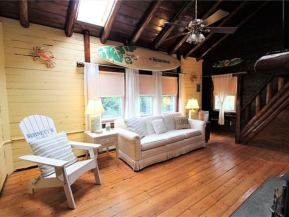 Quaint 2 bedroom bungalow located in a sought after area of Bonnet Shores with deeded access to Kelly Beach and all that Narragansett coastal living has to offer. This 2 bedroom, 783 Square foot log cabin style bungalow boasts a large central stone fireplace, heated enclosed porch, as well as a private and spacious backyard. In addition, the property is connected to town water and sewers and is located outside of the Special Flood Hazard Area. Due to its idyllic location, this property is perfect for buyers that want a vacation home or those looking to renovate / rebuild into a year round residence.