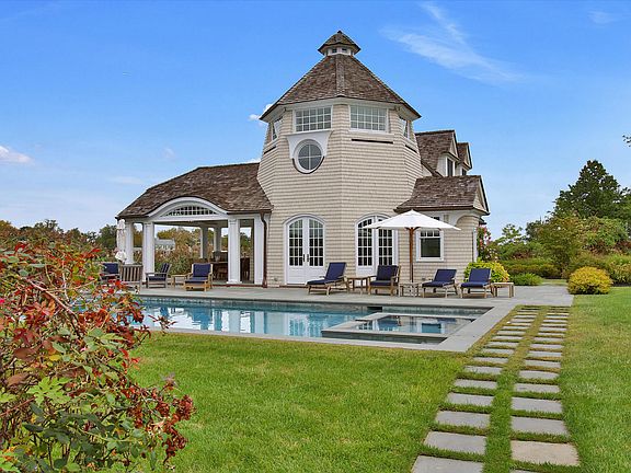 At first viewing this spectacular lighthouse inspired waterfront home with its rounded main room that soars two stories before tapering inwards, reaching a height of 25 will take your breath away. French doors offer egress to both salt water pool and covered porch. An ocular window reminiscent of a ships porthole further emphasizes the nautical feel. This area includes a kitchen, butlers pantry and family room. There is full bath and a game room/bedroom. The first floor bathroom has two teak changing areas, lockers and large walk-in shower stall. On the second floor, there is an enviable master suite with full bath and amazing water views. Radiant heat flows throughout the first floor bluestone area. Perfect for those scaling down or just beginning.