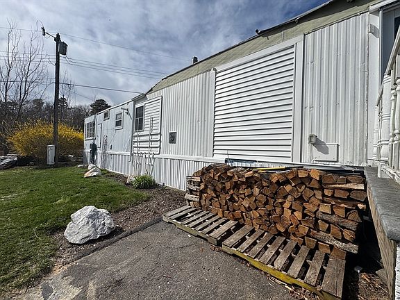 Welcome to Mayflower Hills Family Park.No age restrictions! Beautifully maintained 2-bedroom home in Plymouth.The step-up kitchen sits at the front of the home, offering generous cabinet space and functionality.The cozy living room has Bamboo flooring and a striking wood stove that, along with the Lenox heating system, keeps the entire home warm. Professionally inspected by the fire department, the wood stove is backed by double fireproof sheetrock, and there’s an additional vent ready for a pellet stove if desired. A 9x5 bump-out expands the living room, perfectly fitting a full-size couch (as shown in photos). The main bedroom also includes an additional bump out for a spacious closet. HUGE yard—ideal for entertaining or relaxing.—and a massive granite stone in front of the wood stove that adds unique character and stays with the home.Monthly fee of $740, covers taxes, water, septic maintenance, snow plowing & twice-weekly trash removal. 14ft by 12ft Shed