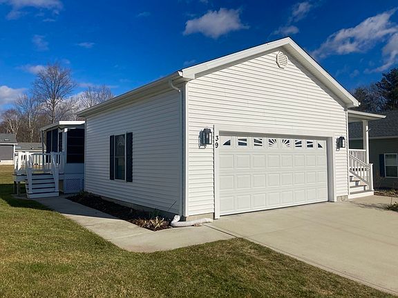 Not just a HOME but a LIFESTYLE in this 55+ community at Liberty Manor. Better than new ~ with many added "extras" : The large Kitchen has recessed lighting, oversized island w/ beautiful pendant fixtures & ss appliances. Bright Dining area opens to cozy Living Room w/ gas fireplace. The Master bedroom features a walk-in closet and master bath. Convenient Laundry room off the mudroom entry is everyones' desire! New flooring throughout. The sunroom provides space for peaceful relaxation, and back entry w/ slider from the Kitchen. Storage shed, staircase into garage Attic and extra insulation were added by current owners. The $540 a month "lot fee" covers property taxes, water & sewer costs, trash removal, road & sidewalk maintenance, and inground sprinkler upkeep. Also covered is use of common space: Community Center w/ Library, Fitness Room, Function room and Picnic area. Check out the scheduled Social Events~~ WELCOME to the neighborhood! ~~ OPEN HOUSE Saturday, Feb. 4, 12:00-2:00